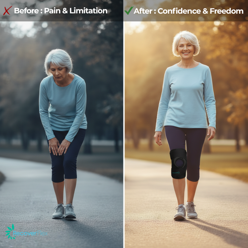- More stability on stairs and uneven ground : Each step feels steadier, the worry of your knee “giving out” begins to fade.