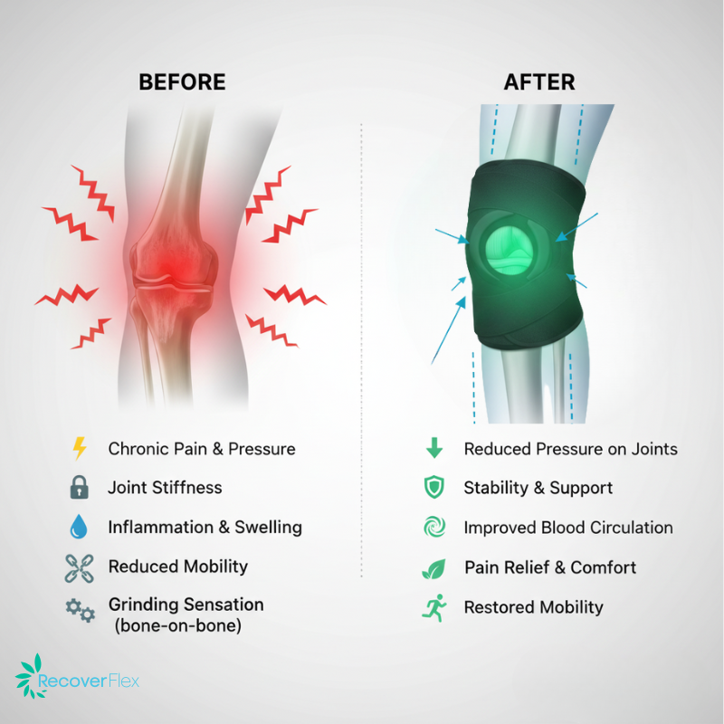 KneeRelief™ is designed to provide stability and reduce joint pressure, which can ease discomfort from arthritis, osteoarthritis, cartilage wear, and everyday knee pain.