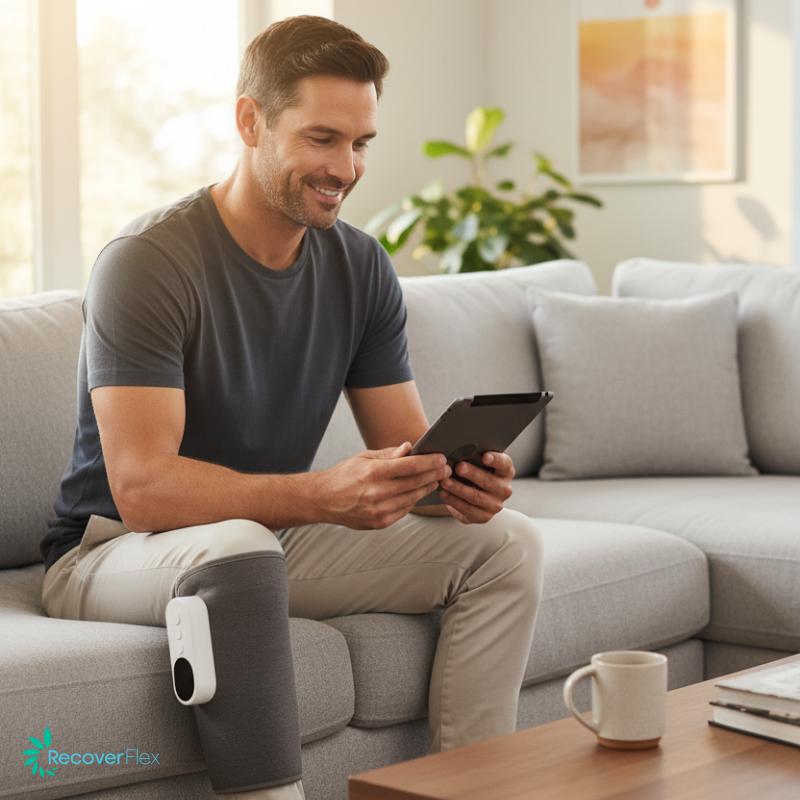 Pneumatic Compression: Gentle waves squeeze and release your calves, mimicking the muscle movement you had when you were younger and more active. This helps push trapped fluid up and out — just like hospital therapy after surgery.